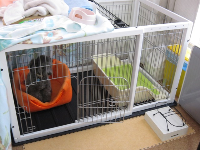 ケージなしにするか、今あるケージを拡張するか、色々悩んだんですが、結局買い換えました。ちなみに昔のケージやトイレトレーは、ボランティア団体に寄付しました。