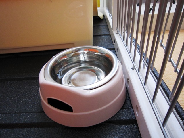 食器も新調。食器は床に置くより胸の高さにすると良いと書いてあったので、100均で買った木箱にペンキを塗ってみました。