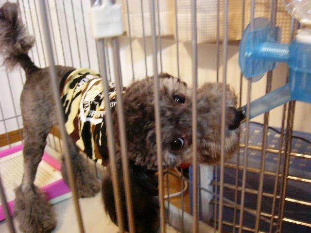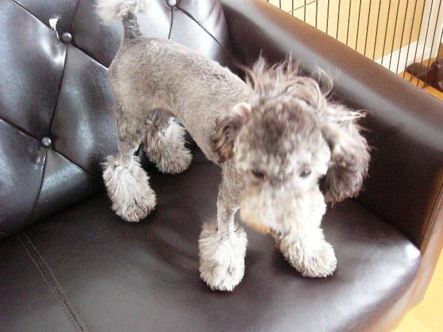 いや、お約束で切ってるうちにドンドン短くなってしまい、こんなことに(^^;) しかもまだカット途中です(笑) 顔も剃ったほうがいいのかなぁ。1回ぐらい剃ってみるかなぁ。でもテディベアカットに早く戻したいんですよねぇ。