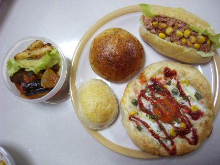 ツナコーンはダンナがマヨネーズ嫌いなので、バーベキューソースで紛らわせてマス。ちょっと詰めすぎたかも;; そういえばこれ、ロールパンなんです。焼いたら巻き目?が全然わからなくなってしまって・・・