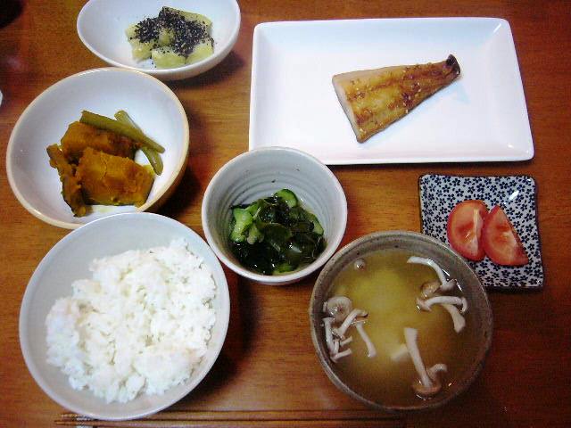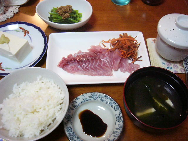 冷奴、ホウレン草のおひたし、刺身、茶碗蒸し、白米、潮汁