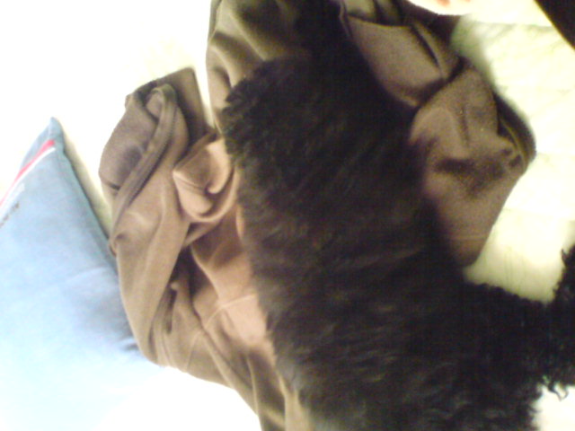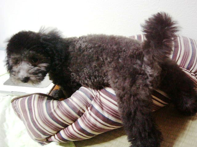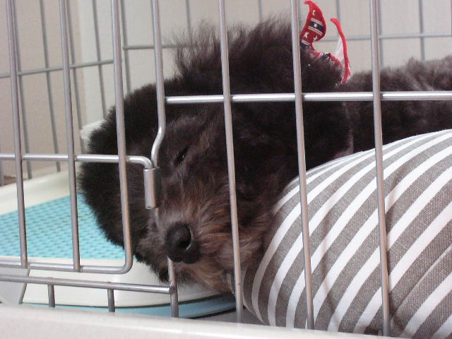 今回、胴は短く、足と頭は長めにカットしたから、長いままの毛は黒くて、なんだか"まだら"。特に顔は、おサルさんみたいな、眉毛みたいな輪郭がくっきり出て、それがなんか残念。。