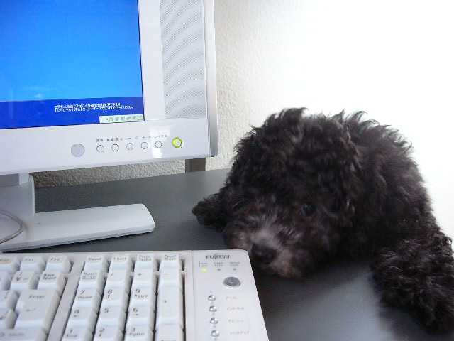 パソコンをいじってると、くうがしょっちゅう近づいてきます。膝の上に座っててくれれば嬉しいのですが、私の膝を踏み台にしてキーボードの上に乗ったり、マウスのコードを齧ろうとします。パソコンに興味津々のご様子 (^ ^;)