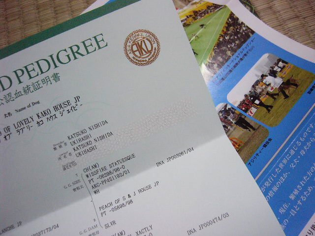 血統書って初めて見たんですが、アルファベットの品番みたいなのが並んでて、なんじゃこりゃ?って感じでした。