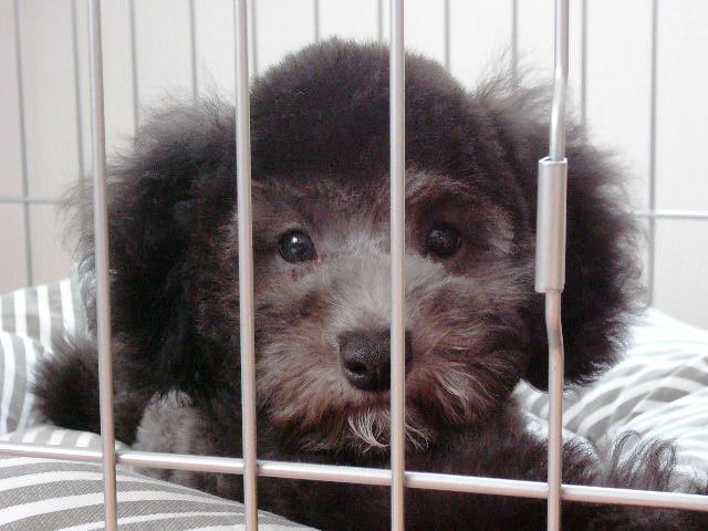 くうは最初、真っ黒の子犬でした。でも毛の根元を見るとシルバー(ねずみ色)で、将来的にはシルバーの毛色に変化すると言われました。