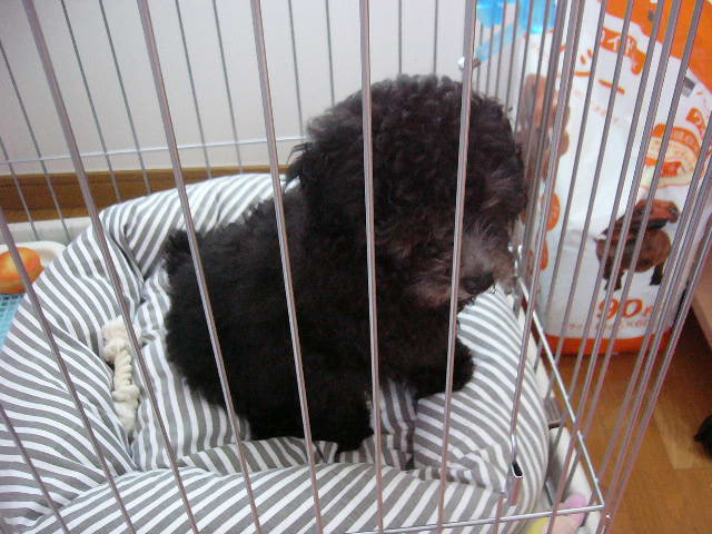 顔以外は真っ黒に見えるので「クロ(黒)」という名前しか浮かばなかったのですが、将来的に毛の色はシルバー(ねずみ色??)に変わるということなので、「黒」はまずかろう・・・あーでも「く」のつく名前がいいなぁ~と考えたものの思いつかないままお迎えの日がきてしまい、とりあえず「くー」と呼ぶことに(汗) 結局、発音的に?「くう」となりました。ヨロシクお願いします。