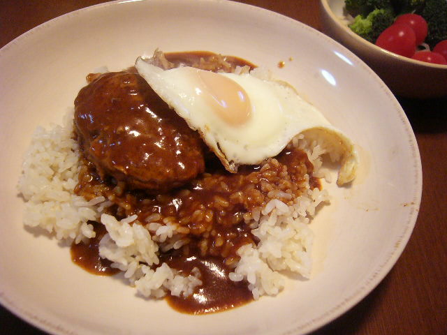 ええと、誕生日なので「洋食屋さんのハンバーグカレー」をチョイス。市販のデミグラスソースにカレーのルウを入れて、ハンバーグを煮込む・・・のですが、ソース?自体は今まで作った豚や牛のカレーのほうがおいしい。そりゃデミ缶より炒め玉葱+摩り下ろし野菜のほうがおいしいよなぁ。でも満足です。