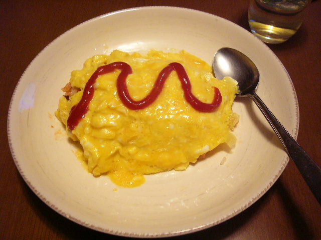 夫はカレーがいいと言うけどカレーはあまり残ってなかったので、オムライスにして夫の分だけカレーをかけました。