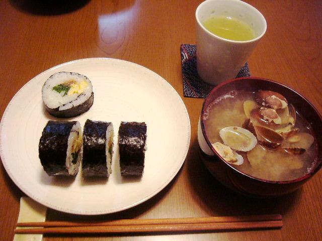 巻き寿司、あさりの味噌汁