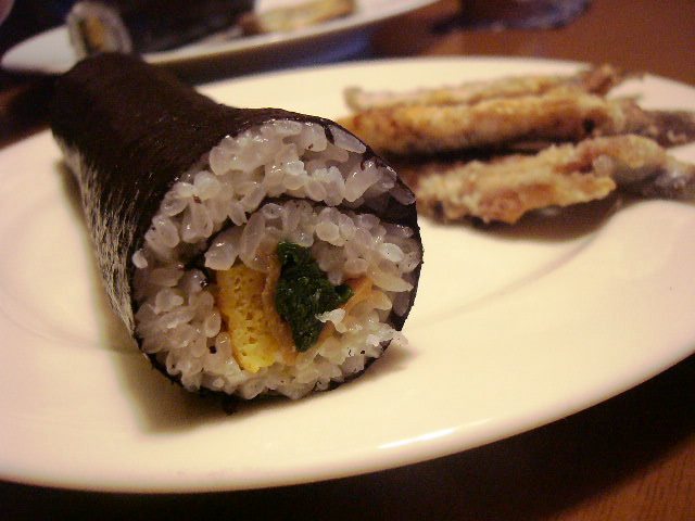 具は卵焼きとホウレン草とかんぴょう。食べきれない気がしたので細めに作りました。でも夫が下ネタを言うので、無言で食べるのは早々に挫折・・・。しかし恵方巻の時のおかずって、何作ったらいいんだろう?