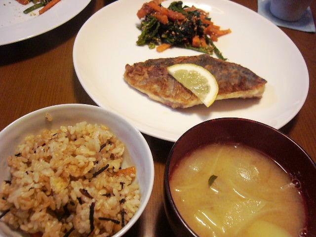 パスタ用のお湯を沸かしてる間に小イワシを手開きして、フライパンで炒めてちょっと皿に避難させて。宅配で届いたばかりの蕪の葉をちょん切って、茹でたパスタとマヨネーズで炒めて、コンソメの残りと塩コショウで味付けして、最後にイワシと混ぜて出来上がり。夫が嫌いで私が好きな味。ひとりの時って、好きに作れるからラクだな~