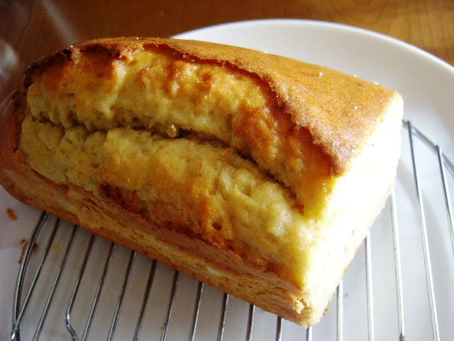 今回はパンじゃなくて、パウンドケーキ型で焼いたケーキです。でもバターを使ってないし砂糖も少なめで、バナナブレッドにしてはかなりあっさりです(実はバナナが余ってたんですよ)。
