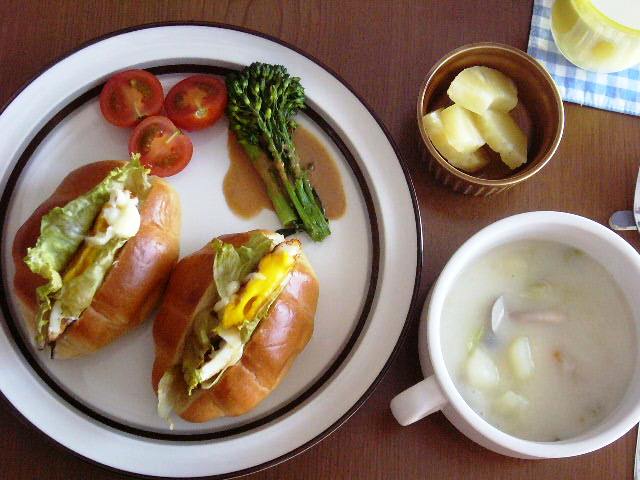 22日の晩ごはんは、夫におかゆと魚、やわらかくて食べやすいだろうとパンとポタージュという変な組み合わせになりました。私も色々つまんでごちそうさま。23日朝もそんな感じでバタバタ。写真はありません。