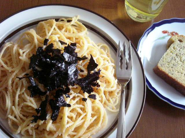 朝からたらこスパゲティ、バナナブレッド