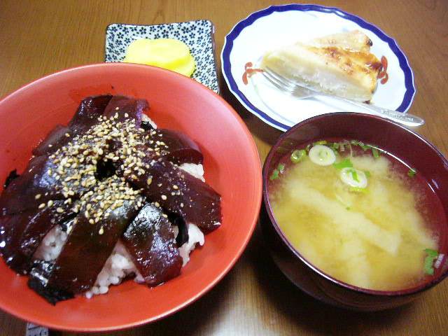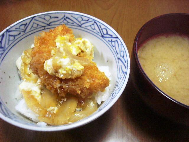 買い物に行って遅くなったので、トンカツを買って簡単カツ丼!めんつゆに砂糖と玉葱を入れて、卵でとじるのです。私は肉が苦手なのでコロッケで。しかしトンカツが予想より小さかった(揚げてもらって、その後は袋で見えなかったので、あんなに小さいと思わなかった;)ので、私のコロッケの大半を夫に譲りました(夫は夜勤だし、時間がなかったので)。しかしおなかすいた。なんか食べよっかなー