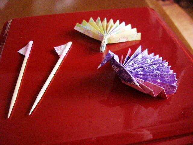 お正月に似合いそうな華やかな箸置きがないので、折り紙で作ってみようか?と折ってみました(右下の鶴)。でもビミョウ・・・。扇と爪楊枝はおせちの飾りに使うかもです。100均でこういうの買おうかどうか悩んだので、ちょっと作ってみました。