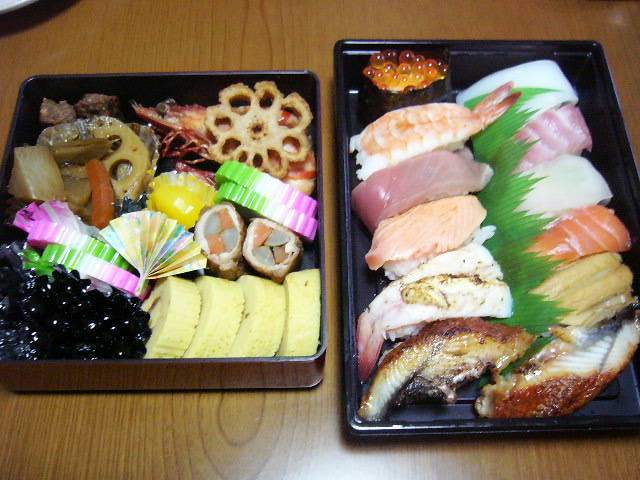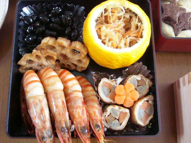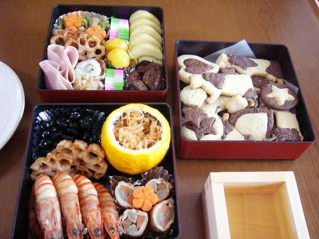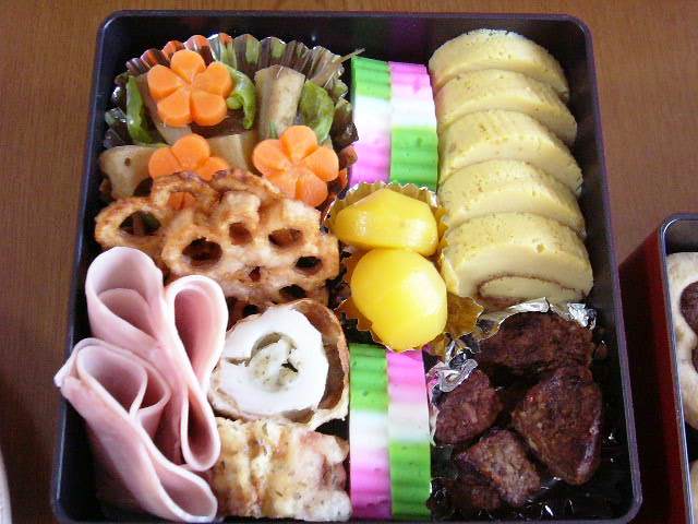 開けたとたん笑い出した夫。やった(^^) 今度は、巻き寿司やいなりを入れてみようかな~。おせちといえど、ご飯物が食べたくなる私。