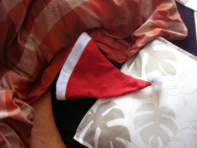 昨夜はサンタ帽子で夫を出迎え、その後、夫にバトンタッチ。夫はずっと帽子を被ったまま食べてました(笑) ちなみに写真はコタツです。