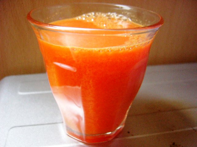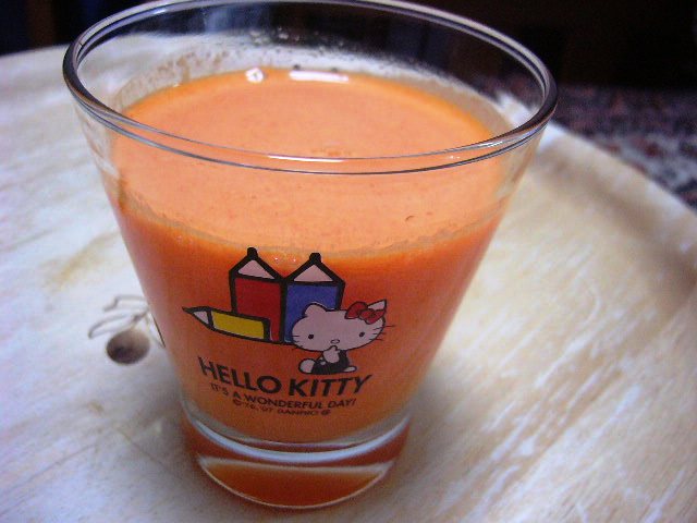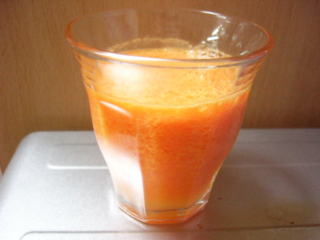 この割合が一番好きかも。果物オンリーだと妙に甘くて、ニンジンが入るとスッキリして丁度いい♪