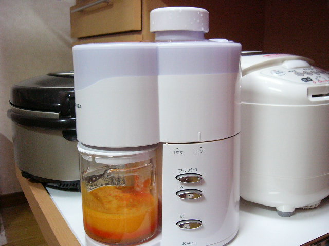 ミキサーだとミカンの内袋を剥く&ニンジンを細かく刻む必要があるけど、ジューサーはミカンとニンジンを1/4にするだけなので楽そう。ただジューサーはイチゴや桃など粘り気の強いものは使えないし、ポタージュやカキ氷も作りたいのでミキサーも欲しい・・・と思ってジューサーミキサーを買いました。