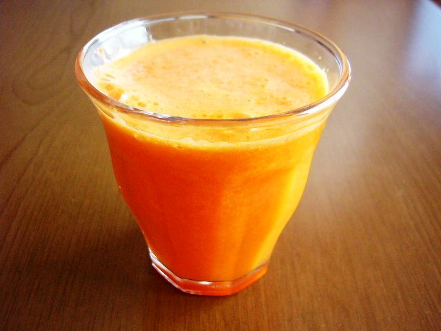 ちいさなミカン1個とニンジン中1個をジューサーにかけると、200ccのジュースに。