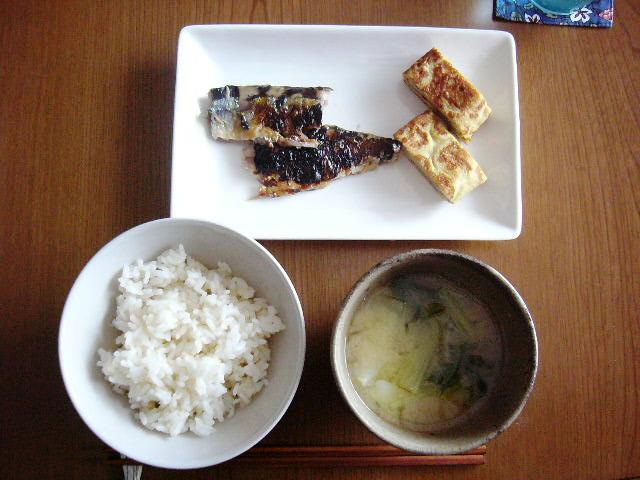 さんま1/2匹、出し巻き卵、七分つき米、味噌汁