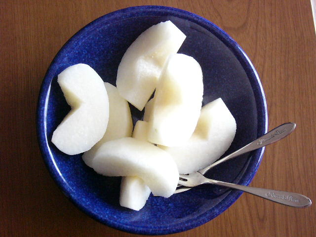 ゴーヤは今まで試した中で、これが一番食べやすかった。ただ塩で揉んで、洗って、絞って、1分程煮て、また洗って、絞ってますけど・・・栄養残ってるかしら・・・