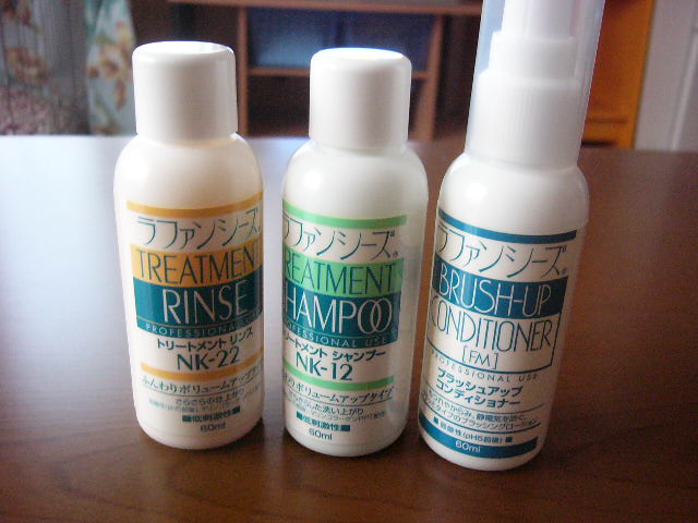 でもエアコンって乾燥する・・・くうをブラッシングする時に静電気が起きたよーな、シャンプーで軋んでるよーな気がする。・・・という訳で、ブラッシングスプレーを買いました。ついでにシャンプーリンスも。