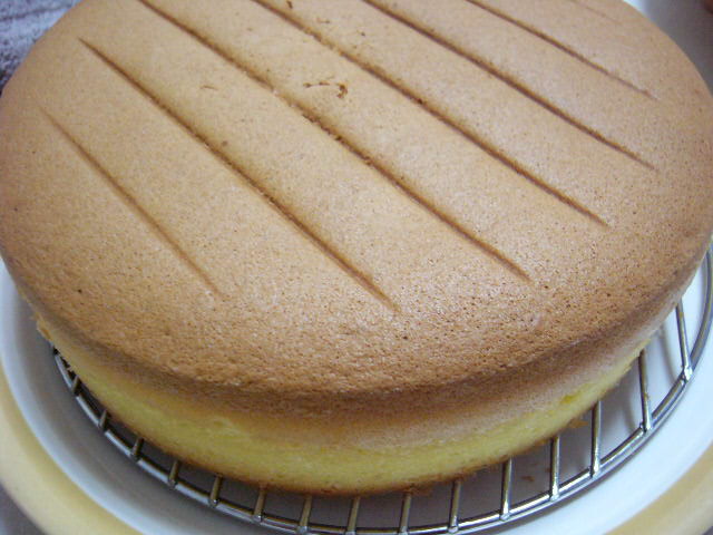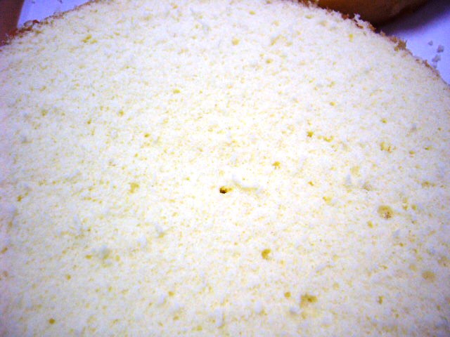 前回に引き続き、「おいしい!生地」を見て作りました。やっぱりこの本の通りにすると、確実に!今までと違うケーキが出来ます(まぁ今までもたまに適当にしか作ってなかったのですが;;) 苺はバラバラの方向を向き、仕上げのシロップもまだら・・・性格がよくわかってしまう(汗) 一応スポンジの写真も載せてみます~↓