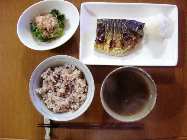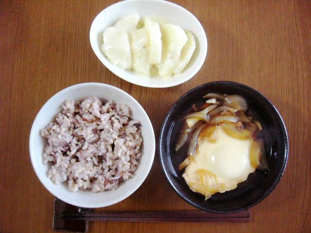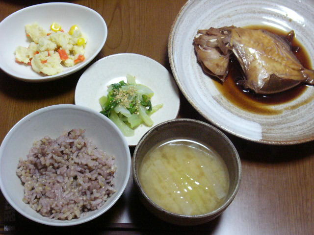 ポテトサラダ、白菜の塩漬け(?)、カワハギの煮付け、雑穀入り玄米&七分付き米、大根と人参の味噌汁