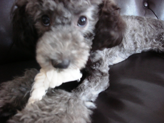 獣医さんやトレーナーさんから「くうちゃんは歯がキレイですね」とたまに言われます。まだ9ヶ月と若いから当たり前じゃないの?歯磨き時々しかしてないよ~(^^;) と思ってたけど、ハッと気づいた。くうは毎日1時間はヌイグルミやらロープやら噛んでいる。よく噛むな~と思ってたけど、それで歯がキレイなのかも?